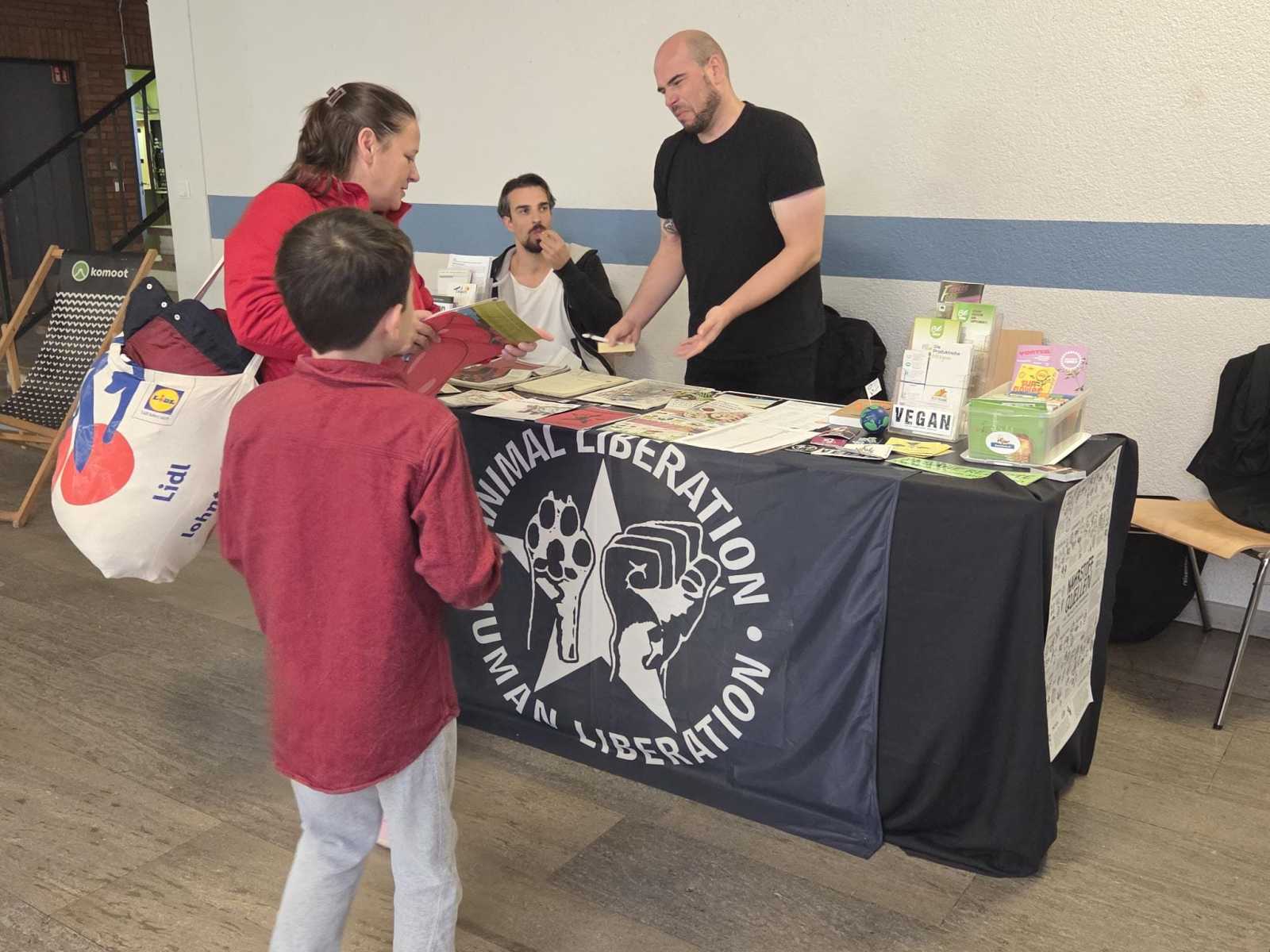 Wir die Animal Liberators Frankfurt haben im Bündnis mit einem Infostand bei der ersten Sportopia in Neu-Isenburg über Tierrechte und Veganismus informiert. Angelehnt an die Arbeiter*innen-bewegung die für eine gesellschaftliche Befreiung von Herrschaft einstand und -steht, wurde ein theoretischer Bezug von Arbeiter*innen zu Tierrechten gedacht, der von einzelnen Teilnehmer*innen aufgenommen wurde. Auch die vegane Ernährung im Sport und die positive Klimabilanz war insbesondere bei den jüngeren Thema.